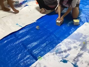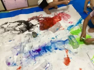 この後どんどん遊びがエスカレートして、部屋中絵の具だらけになってしまったのはナイショです。^^;