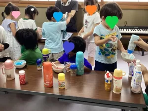 など、色の変化の不思議さを体験しながら遊びを進めていきます。