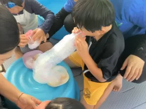 去年は、ペットボトルを使ったり、石鹸をけずって泡を作りました!