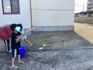 泡遊びも違ったやり方でやってみると、いろいろな遊び方があっておもしろいですよ。