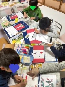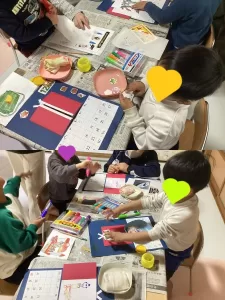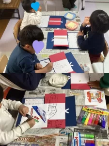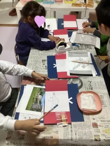 自分の発想で描く子、見本を見ながら描く子、なぞり絵をする子と様々でした。なぞり絵は初めてのチャレンジでしたが、興味を持って集中して描いていましたよ。