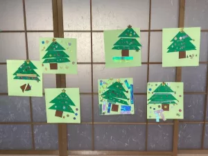 こちらも素敵なクリスマスツリー🎄実はこの後のクッキングで、同じ形に食パンを並べてツリーピザを作ったんですよ。詳細はクリスマスクッキングをご覧ください😊