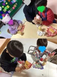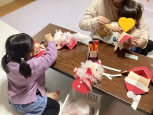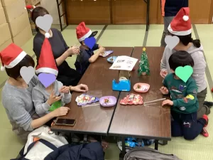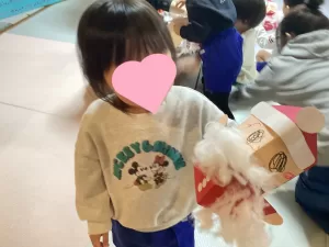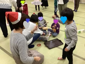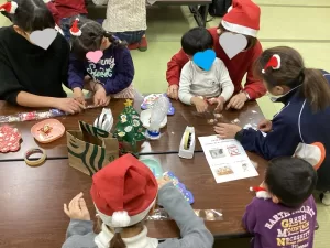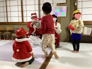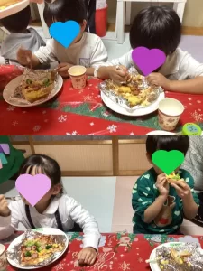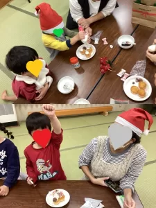 サンタさんの帽子をかぶったら、お待ちかねのクリスマスパーティーの始まりです🎉ゲームをしたりダンスをしたり、みんなで楽しいひと時を過ごしました。