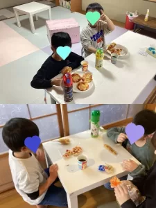 今回のように同じ形を作るための練習をかね、前もって工作してから入ると、クッキングで初めてのことにチャレンジする時も自信を持って取り組むことができます。